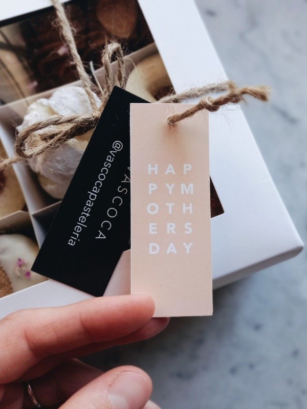 •1 mini budín de chocolate, cubierto con choco semiamargo y maní, y decorado con ddl.